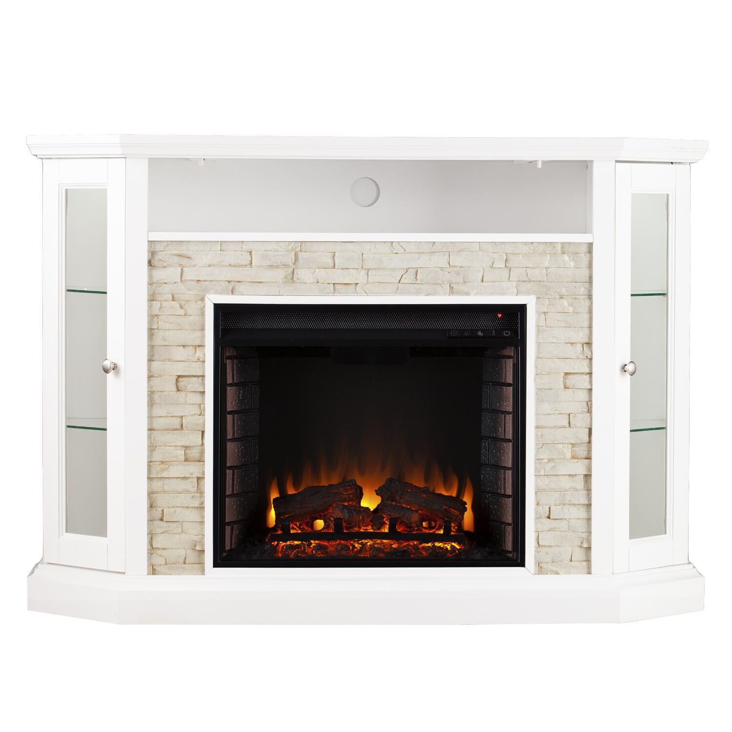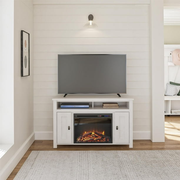 Real Flame 1750e W Lynette 56 Corner Tv Stand W Electric Fireplace In White from www.dynamichomedecor.com A sleek, smooth finish with brushed nickel hardware and tapered feet make this classical contemporary piece perfect for creating an upscale look. Our sleek styles of fireplace tv stands would look amazing in your living room, doubling as a media center for entertaining. Robust mantel thickness balances the weight of the leg design. This oversized item is not eligible for free shipping promotions. Southern enterprises antebellum 48 in. Ameriwood newland white electric fireplace console ameriwood newland white electric fireplace console $549.99. Made of hardwood veneered mdf, the media console can accommodate flat screen tvs up to 60, and offers plenty of storage space. Media console electric fireplace tv stand in white (62)
